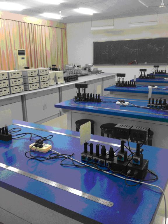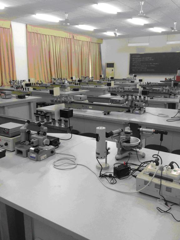 光学实验室,使用面积240m2,主要设备有:防振光学平台、迈克尔逊干涉仪、读数显微镜、分光仪、旋光仪、光具座、气体激光器、固体激光器等。承担物理学(师范)、电子信息科学与技术、科学教育等全校理科专业的光学课程实验教学,同时向全校学生开放。