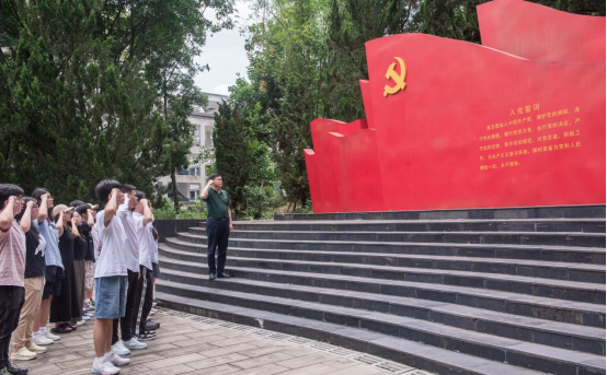 最后,在党委书记杨云老师的带领下,2020级所有毕业生党员在宣誓墙重温入党誓词。